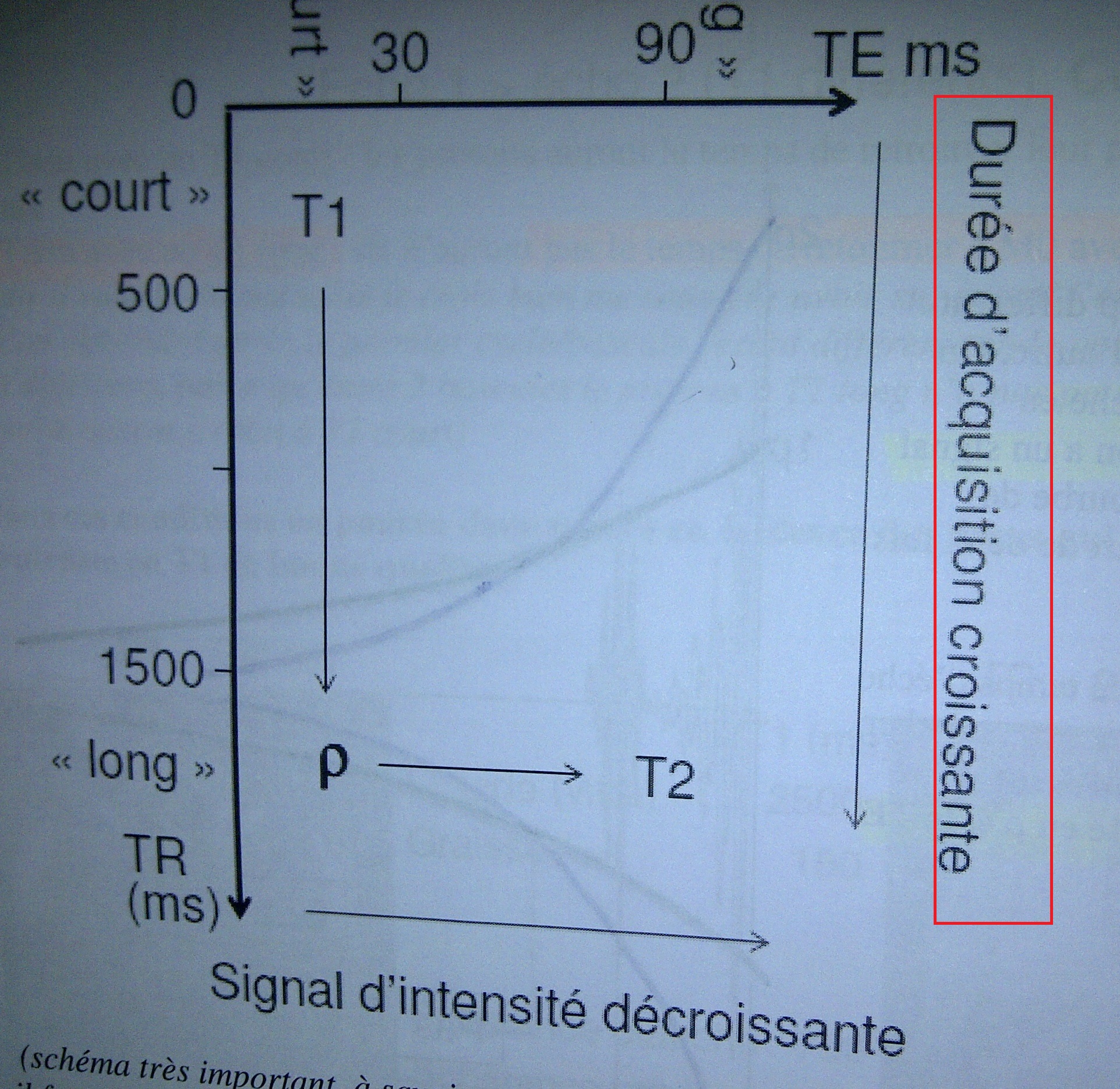Page 11 on nous dit qu'on aura un meilleur contraste en rhô si TE est court. Or à la page 12, avec les images en TR long, on voit bien qu'avec un TE court le contraste n'est pas bon. Donc il y'a une erreur à la page 11 ou j'ai rien compris ? (fort probable, j'ai le cerveau fumant).
