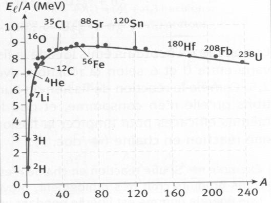 - Nombre de nucléons proche de celui du Fer = trés stable = énergie de liaison par nucléons élevée