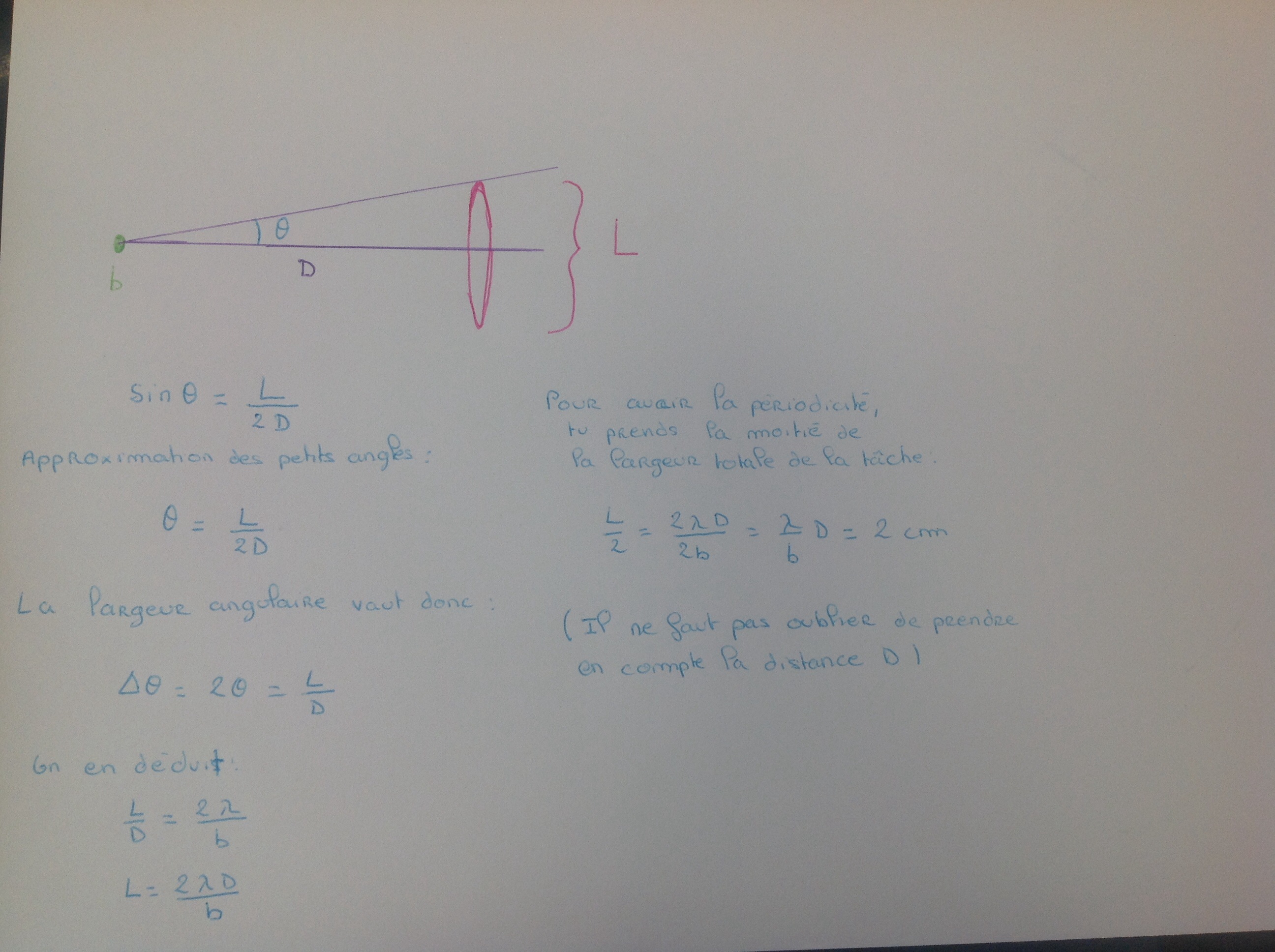 Déjà, juste pour que je comprenne bien, comment voyez vous la différence entre L et 2lambda/b (largeur angulaire) :question: Car on a bien une différence, selon l'équation :