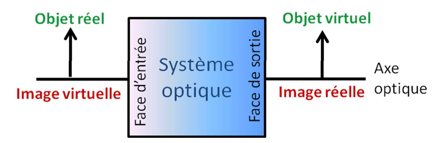 - Il se situe après la face de sortie (c'est-à-dire à droite) : c'est un objet virtuel
