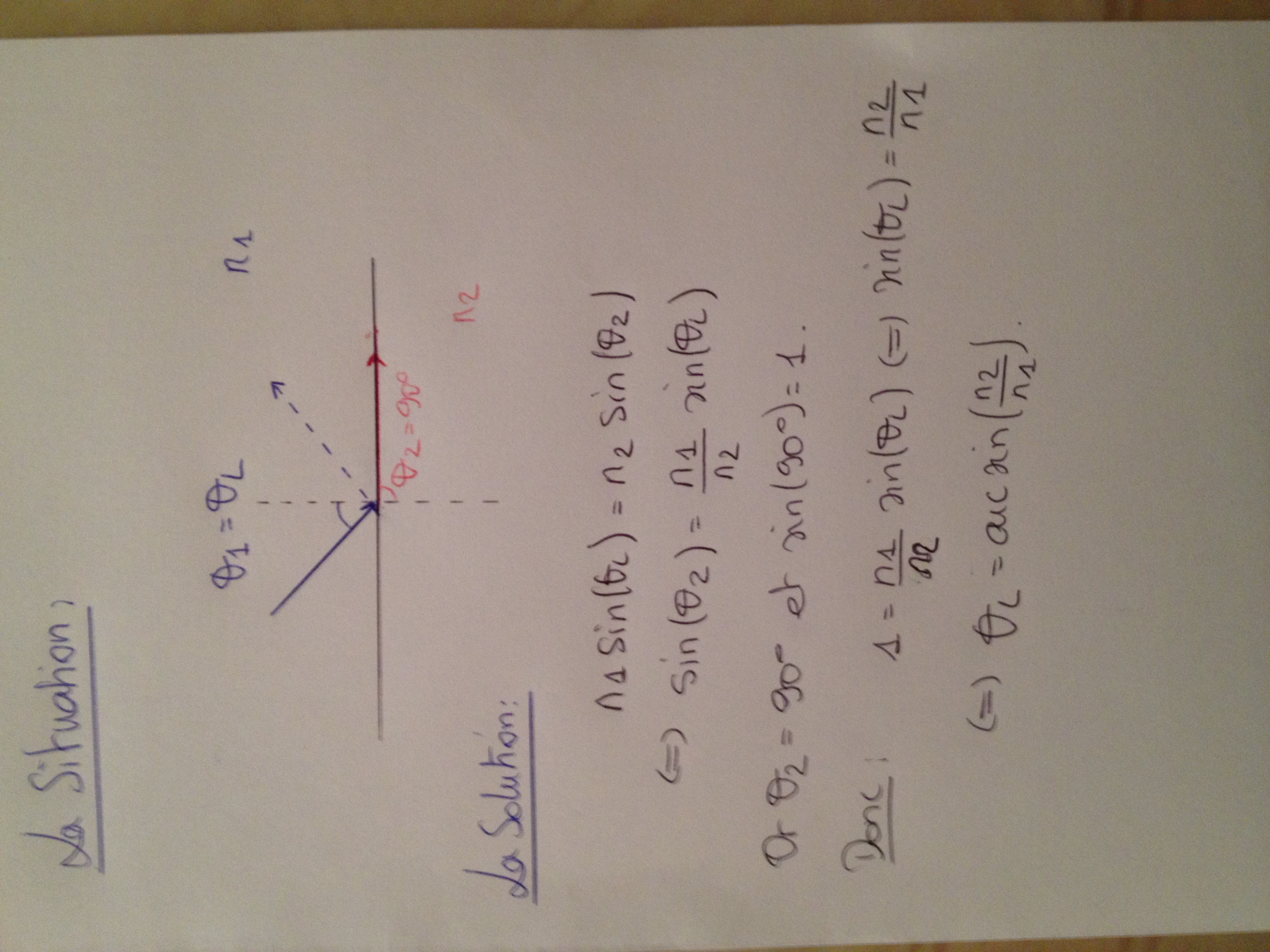 Pour répondre a Gloria : attention il faut bien regarder quel est l'ordre des milieux traversés, en effet