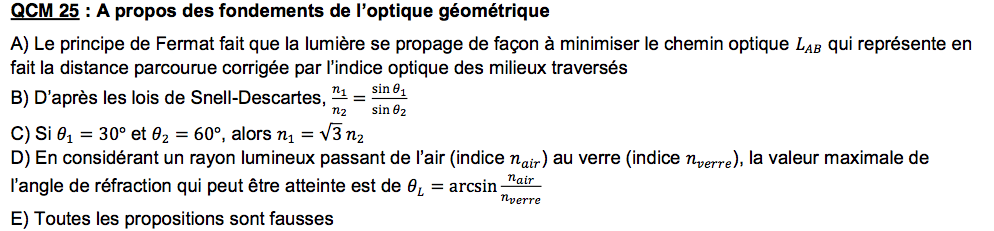 C'est pour cela que la démo que tu as fait est juste, il faut par contre faire bien attention a la situation présentée dans le QCM (surtout en optique