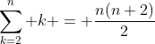 Ex : \sum_{k=2}^n k = \frac{n(n+2)}{2} donne :