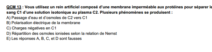 Concernant le qcm 13, je ne comprends pas pourquoi il y a un passage d'eau est d'osmoles de C2 vers C1.