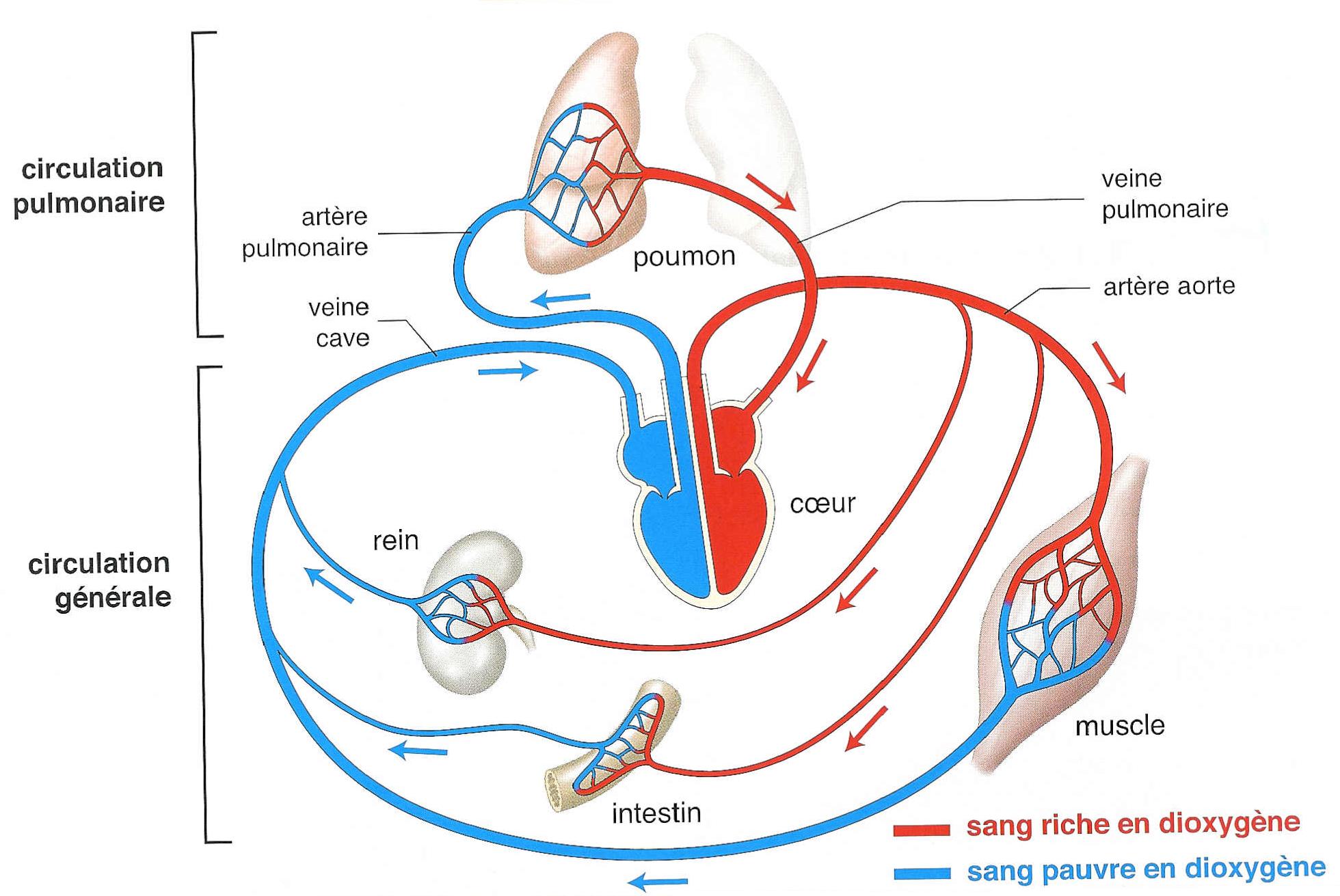 circulation pulmonaire et revient par les veines pulmonaires dans