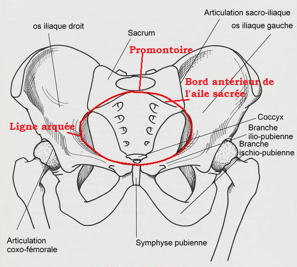 Alors déjà, le détroit supérieur c'est une ligne continue formée par la ligne arquée, le bord antérieur de l'aile sacrée et le promontoire.