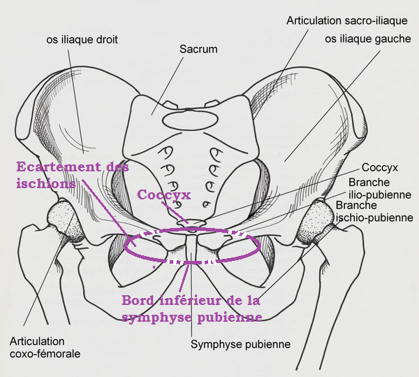 Alors pour le détroit inférieur, c'est la zone délimitée par les bords inférieurs de la symphyse pubienne et du coccyx et l’écartement des deux ischions