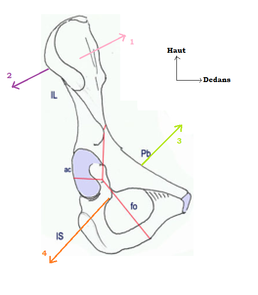 La je t'ai fais un schéma avec les "SE DIRIGE" de l'os coxal: