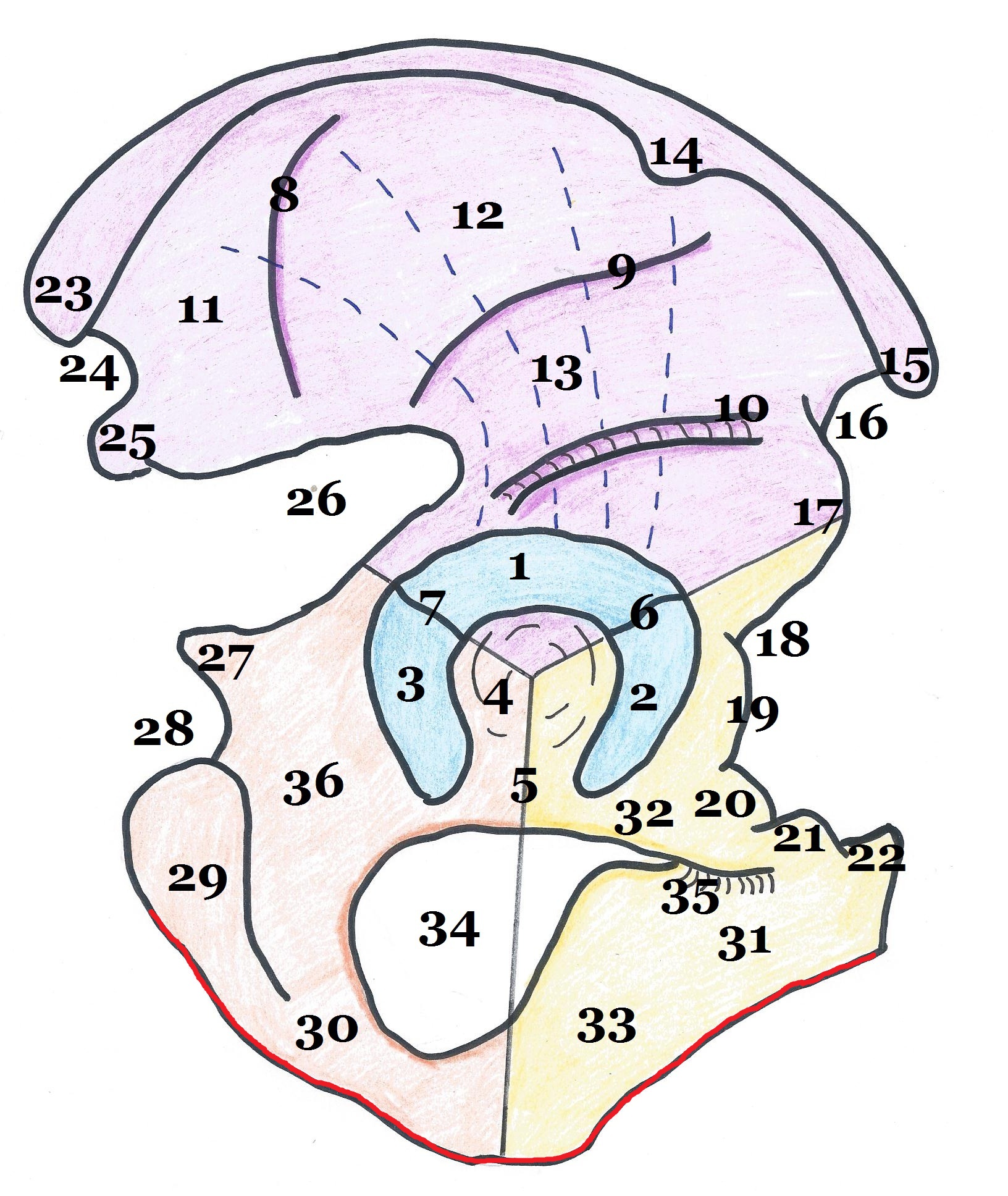 L'épine du pubis correspond au numéro 21