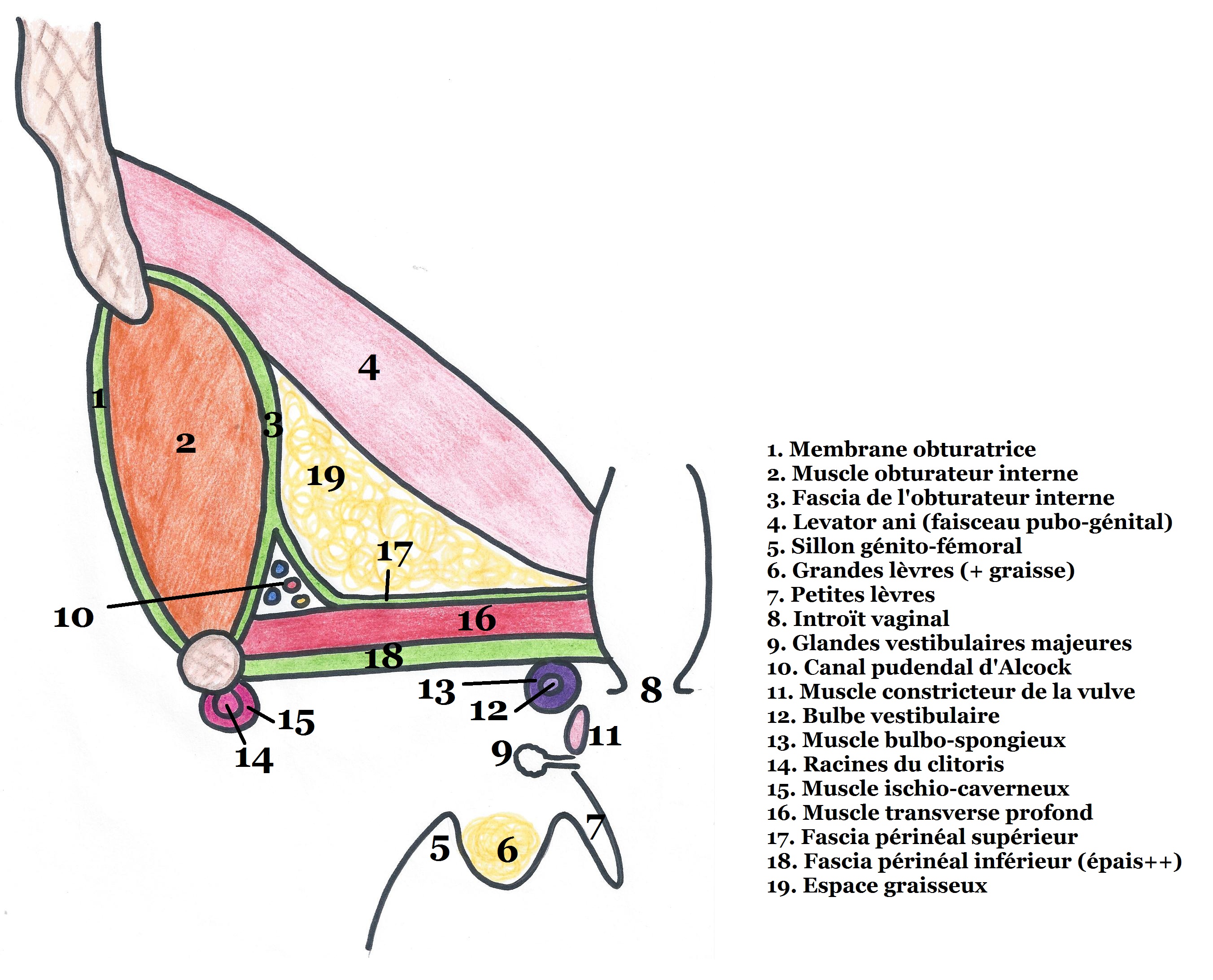 Comme tu le vois sur cette coupe frontale, le bulbe vestibulaire se trouve pile autour de l'introït vaginal. Ca correspond pratiquement au vestibule du vagin, il aurait fallu dessiner le bulbe vestibulaire un mini poil plus bas :P