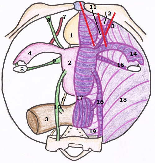 imagines que tu as une nappe (= péritoine) sur une table (=organes pelviens). Tu as un trou (= fossette péritonéale) dans cette nappe et tu peux y passer ta fourchette (= passage de structures).