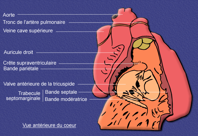 Pour l'éperon de Wolf c'est assez compliqué a expliquer et les schémas sur le net sont pourries donc imagine toi que le ventricule est séparé en 2 chambre par cet éperon de Wolf , une postérieure qui accueille le sang au niveau du ventricule en gros c'est la ou s'abouche la valve tricuspide , et le sang va aller vers l'avant du ventricule ou il va être compresser et éjecter dans le tronc pulmonaire . Il y a aussi un éperon de Wolf à gauche , tiens un schéma , la l'éperon de Wolf s'appelle la crete supraventriculaire