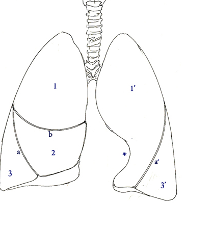 Hmm il y a symétrie entre division bronchique et lobaire ! Or ton poumon gauche ne possède qu'un lobe supérieur et un lobe inférieur vu qu'il n'y a qu'une seule scissure !