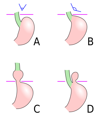 Lors de ton hernie par glissement, cet angle va augmenter petit à petit, jusqu'à devenir de plus en plus obtus, jusqu'à disparaître totalement ! C'est l'image C.
