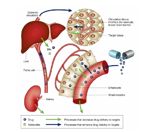"Dans les autres voies, le mdt passe d'abord dans l'intestin, puis dans le sang et dans le foie par le système porte avant d'aller dans la circulation générale "
