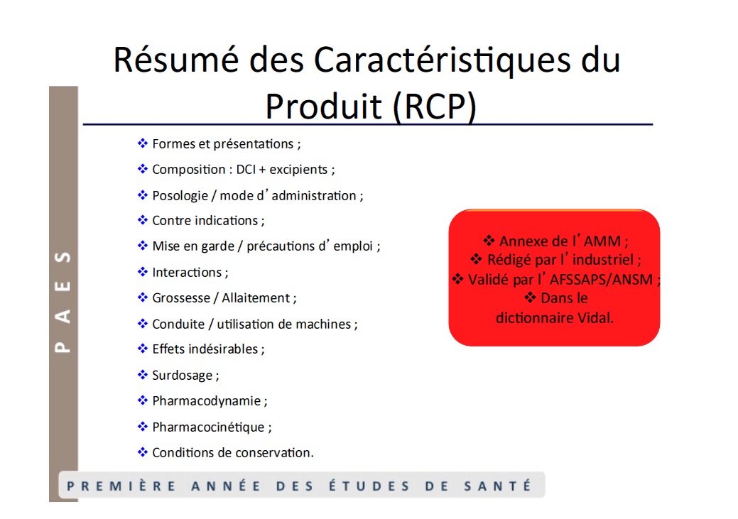 Salut, j'ai beau chercher dans mon cours si la pharmocodynamie du médicament est indiquée dans le RCP je trouve pas. Mais dans le cours de structure de régulation, il est dit que le RCP est dans le module 1 qui comprends la posologie etc… Alors que la pharmocodynamie est dans le module 4.