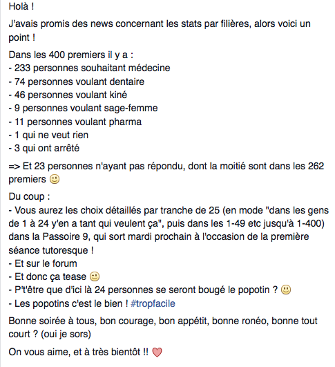 Voici le petit Google Doc à remplir pour faire les stats par filière !