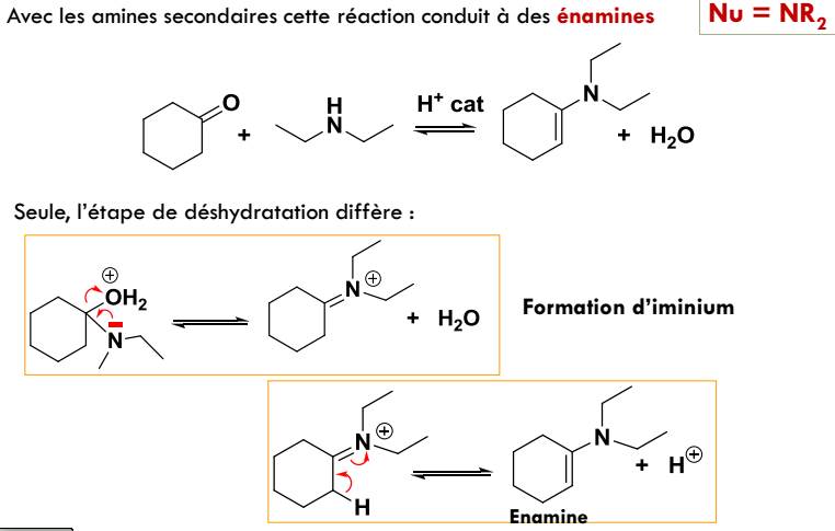 Dans le chapitre des additions nucléophiles, avec des amines secondaires et un "pseudo-lasso" on peut former un iminium jusque là tout va bien
