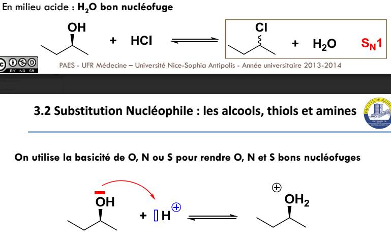 NB : Avendil, ici le prof met bien qu'H2O en milieu acide est un bon nucléofuge