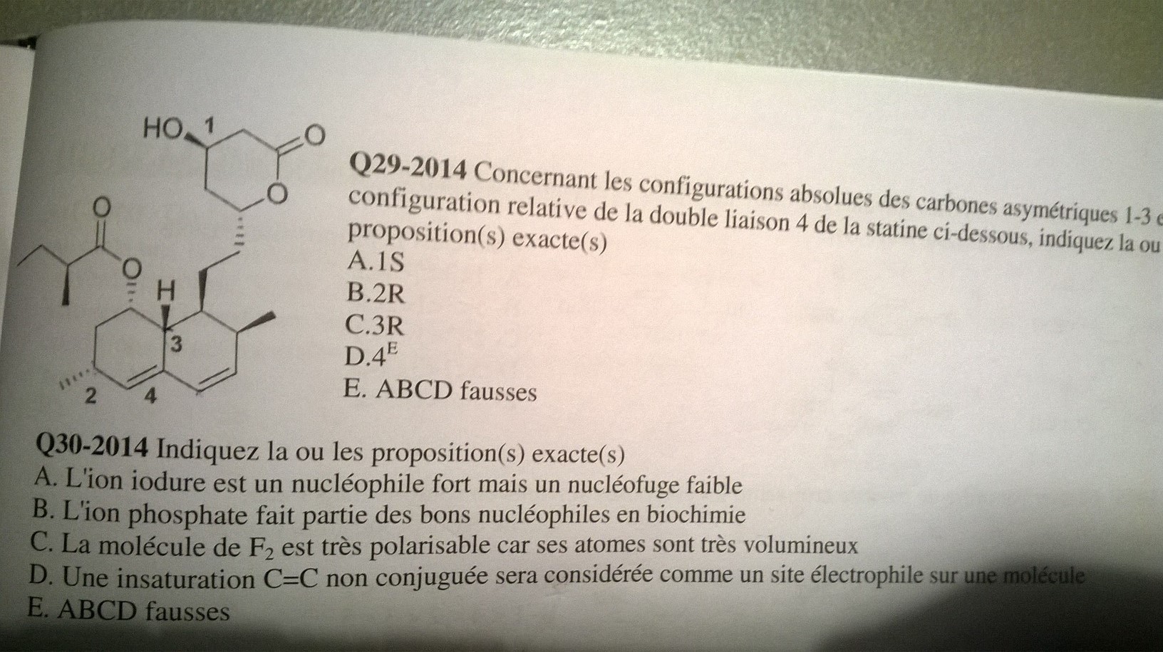 - le carbone du bas lié à 3 C (double liaison) en 2