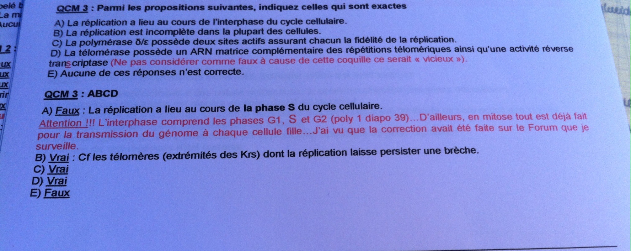 Ahhh oui d'accord j'avais vu pour l'errata en plus mais c'est le "A:faux" je pensais que ça venait du prof et je comprenais pas!