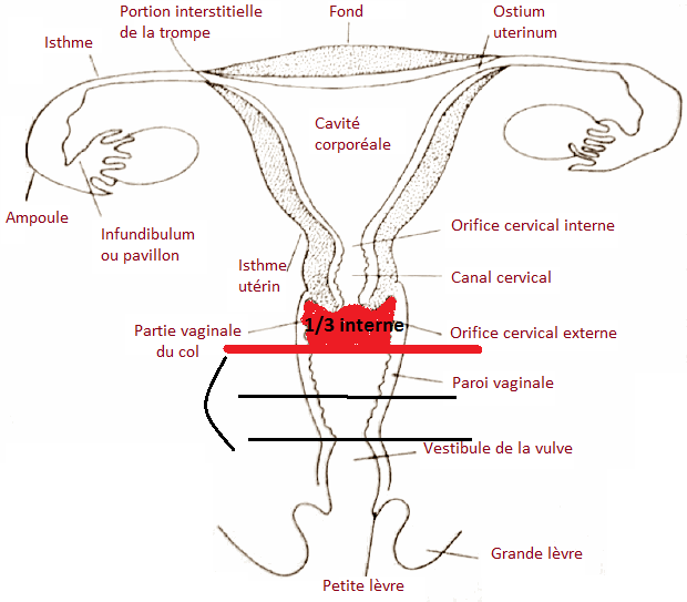 donc la fécondation a lieu (approximativement) au niveau des 2/3 internes, ou du tiers externe, c'est pareil