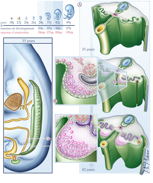 http://cvirtuel.cochin.univ-paris5.fr/E ... 3A2000.htmC'est pas très compliqué, il faut juste s'imaginer des tubules qui vont s'allonger pour former le canal de Wollf et à coté de ça, le tout c'est allongé en largeur (sur le côté) pour former le tube mésonéphrotique