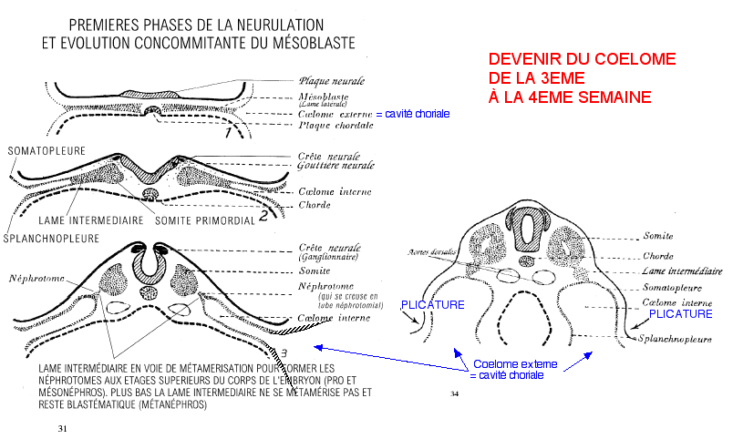 Donc on dit que les 2 sont en contact car le CIE se situe dans l'espace entre des 2 lames latérales et c'est en continuité avec le CEE qui est tout autour et les 2 vont se séparer quand il y aura la plicature et la fermeture du coelome intra embryonnaire