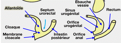Quand il dit « cette membrane » il parle de la membrane cloacale c’est elle qui plus tard en se divisant va donner en avant orifice uro-génital et en arrière l’orifice anal. Et la partie qui correspond à l’allantoïde va donner la vessie et l’intestin postérieur donnera le rectum.
