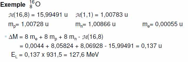 Là tu vas me dire que du coup on prend aussi en compte l'énergie de liaison des électrons en plus de celle du noyau, mais comme l'énergie de liaison des nucléons est nettement supérieure à celle des électrons: on néglige l'énergie de liaison des électron et on considère que l'énergie de liaison totale d'un atome est environ égale à celle du noyau.