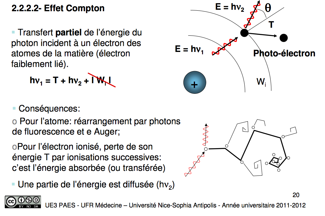 L'item B : un photon electron produit par effet photoelectrique ou effet compton se dissipera par contact avec les autres atomes en les ionisants
