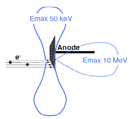 C) Si l’énergie maximale des rayons X est de 50keV, le flux de photons sera perpendiculaire à l’axe des électrons