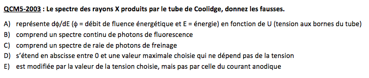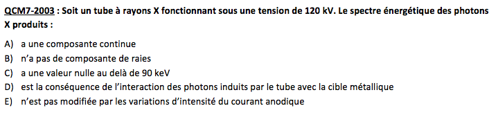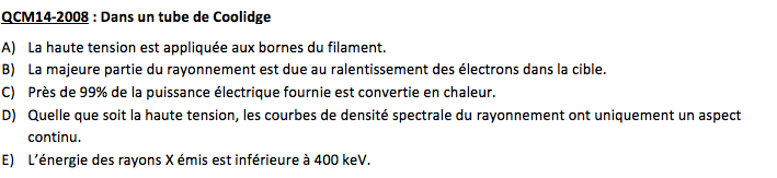 Q11 : "Les rayon X peuvent interagir avec la matière en produisant un rayonnement de freinage" C'est faux car ce n'est pas les rayons X qui font les rayons de freinage mais les l'électrons emis de la cathode ?