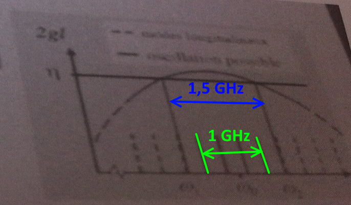 STEP 2 : La largeur de l'intervalle en fréquence sur lequel le gain l'emporte sur l’absorption est 1,5 Ghz (c'est quand 2gl > η sur le schéma du cours en fait qu'on retrouve ci-dessous).