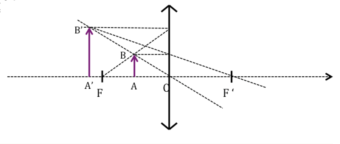 , j'ai essayé de tracer le schema pour arriver a trouver l'image d'un objet reel place entre F et O ( lentille convergente ) , mais je ne comprend pas pourquoi ca fait une image virtuelle ,en effet , mes 3 points ne se rencontre pas !!
