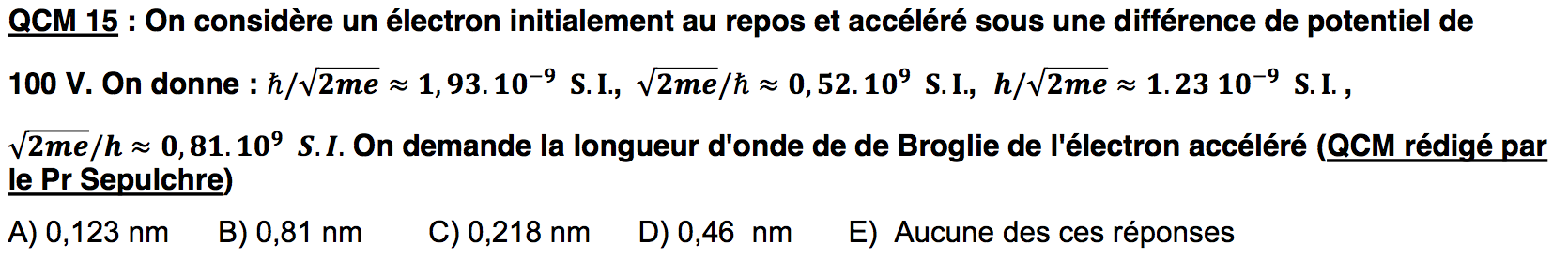 Re: 3 questions QCM physique quantique