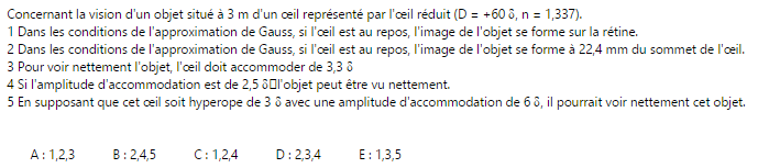 Ces QCMs portent sur l'ancienne partie d'optique médicale que faisait le Pr. Sépulchre. Du coup tu n'as pas les formules pour résoudre ces QCMs.