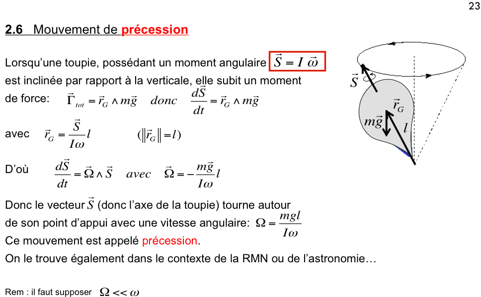 D'ou ma question : Pourquoi aurait on un moment orbital nul puisque dans la précession on a une rotation autour de l'axe verticale ? Cette rotation n'est elle pas caractérisée par L justement ?
