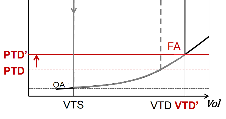 Donc on constate bien une variation du PTD mais aussi une variation de l'OA qui fait qu'au final, avec la même compliance, la PTD sera atteinte pour un même volume.