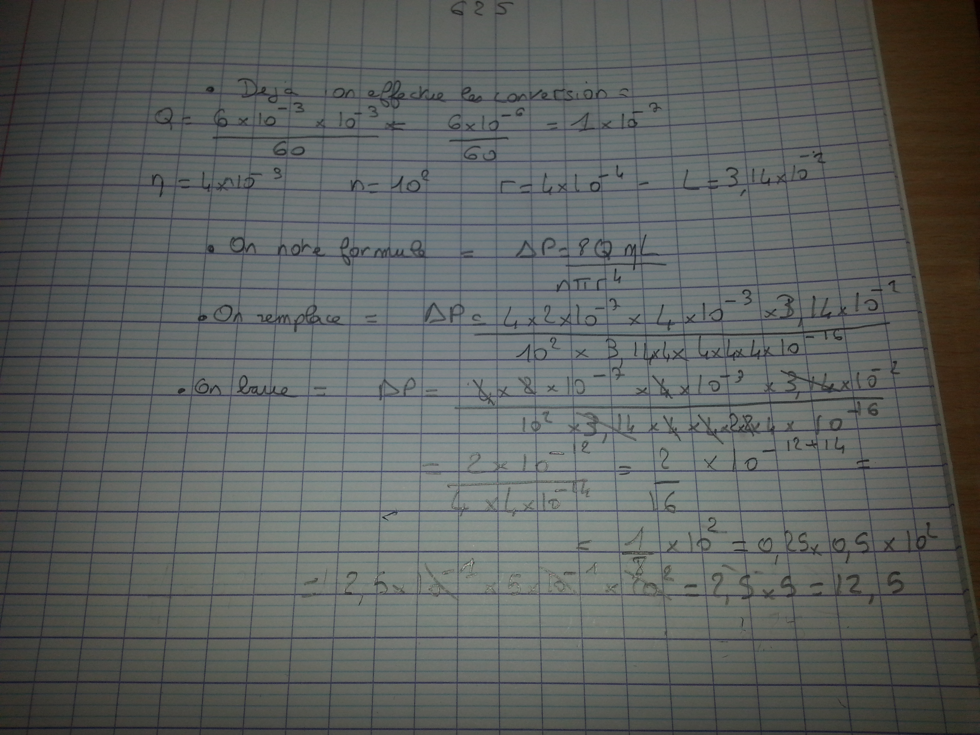 Soit une artériole avec un débit sanguin de 6 ml.mn-1 (η= 4x10-3 kg.m-1.s-1).