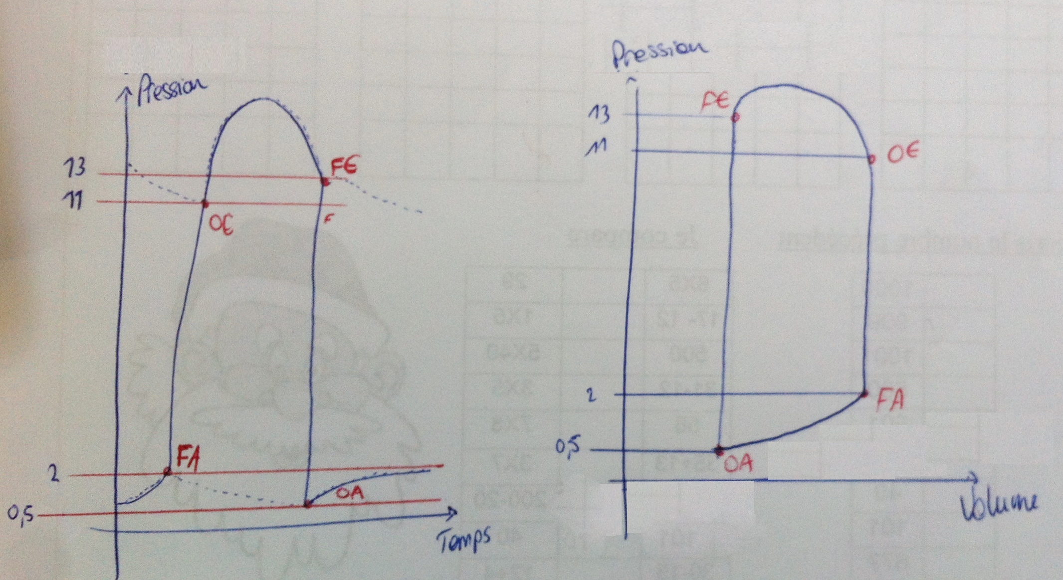 - tu traces au brouillon la courbe Pression-volume qui devrait y correspondre en t'aidant des points que tu as noté avant et de leur pression