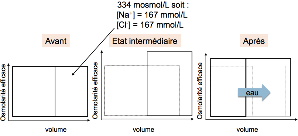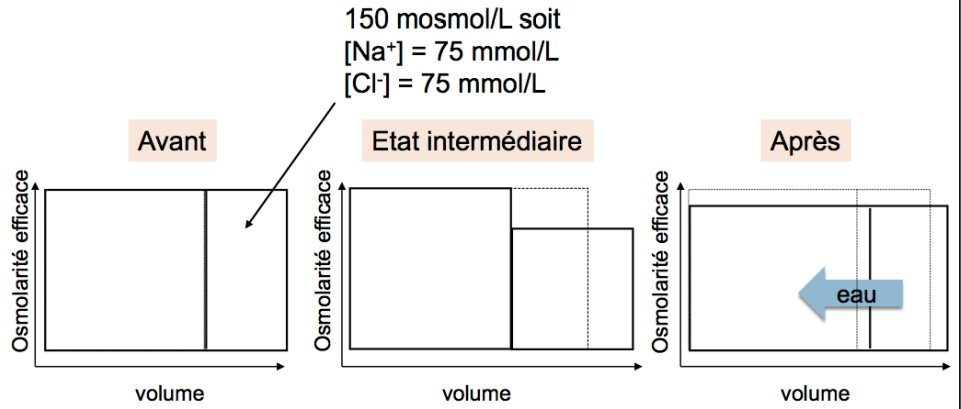 Au final on aura donc une diminution du volume cellulaire et une augmentation de l'osmolarité efficace.