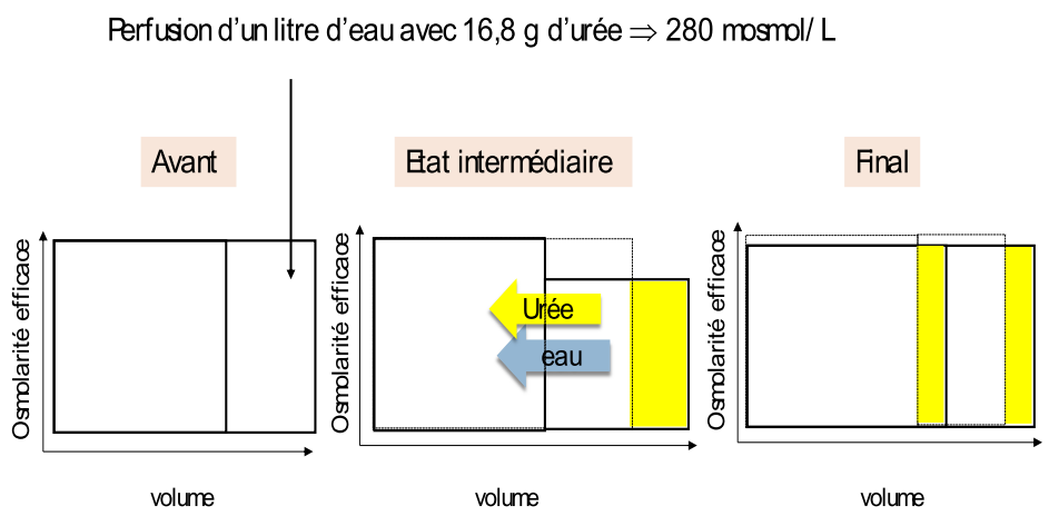 Seulement, dans ce cas là, c'est l'eau et les osmoles (ici l'urée) qui vont partir du compartiment extra-cellulaire pour rejoindre le compartiment cellulaire.