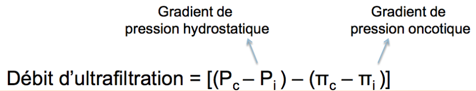 En gros, quand on aura: pression hydrostatique > pression oncotique, le débit d'ultrafiltration sera positif et donc on aura de l'ultrafiltration.