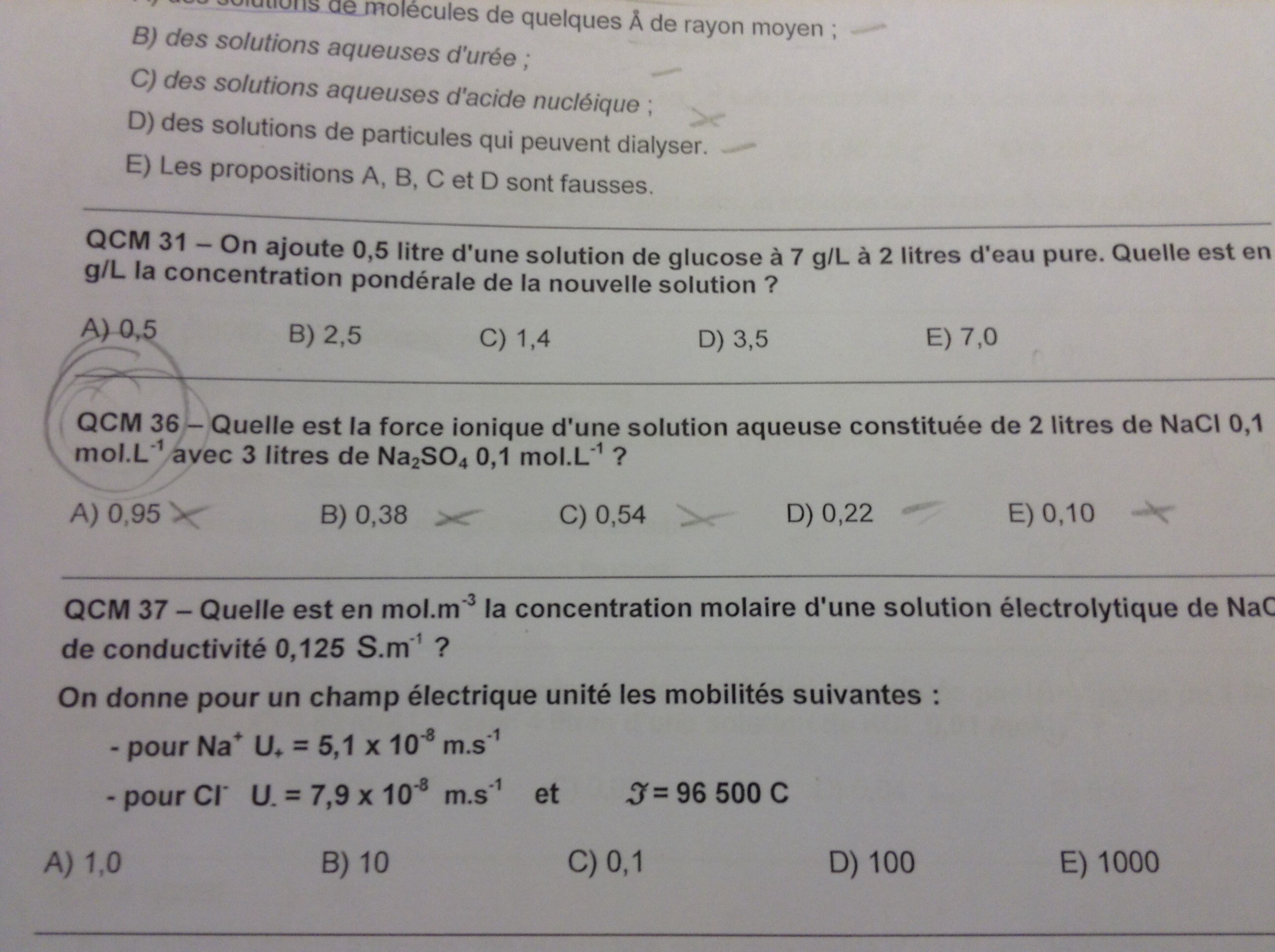 QCM 31 On ajoute 0,5litre de solution de glucose à 7g/l à 2 litres d'eau pure . Quelle est en g/l la concentration ponderale de la nouvelle solution ??
