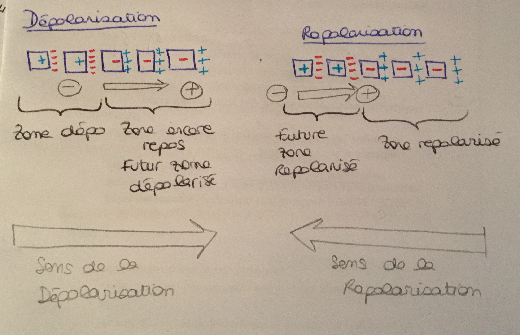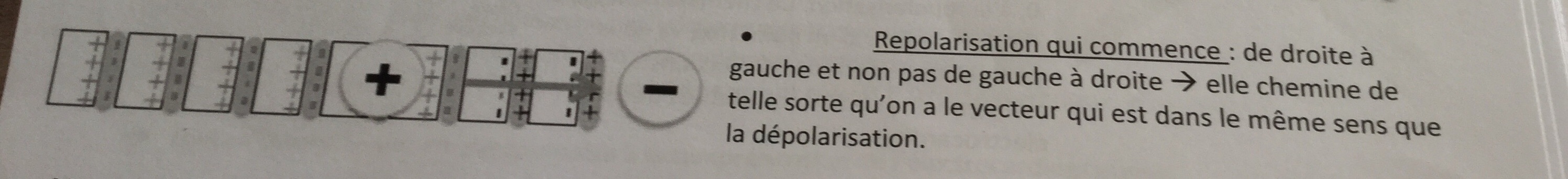 ou est se que c'est le signe - en intra cellulaire ( de la cellule dejà repolarisé) qui va allez vers le + en intra cellulaire ( de la cellule encore au stade de depolarisation)