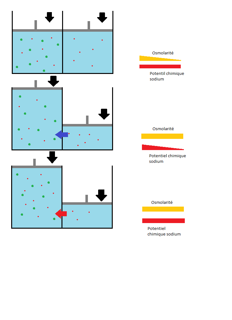 Alors JD ta réponse est juste, mais fais attention quand tu parles d'osmolarité (dans le schéma) on ne peut pas parler d'osmolarité quand on a des protéines.