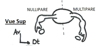 nullipare, les trompes sont dans un plan "antérieur" (par rapport à la multipare) = dans un