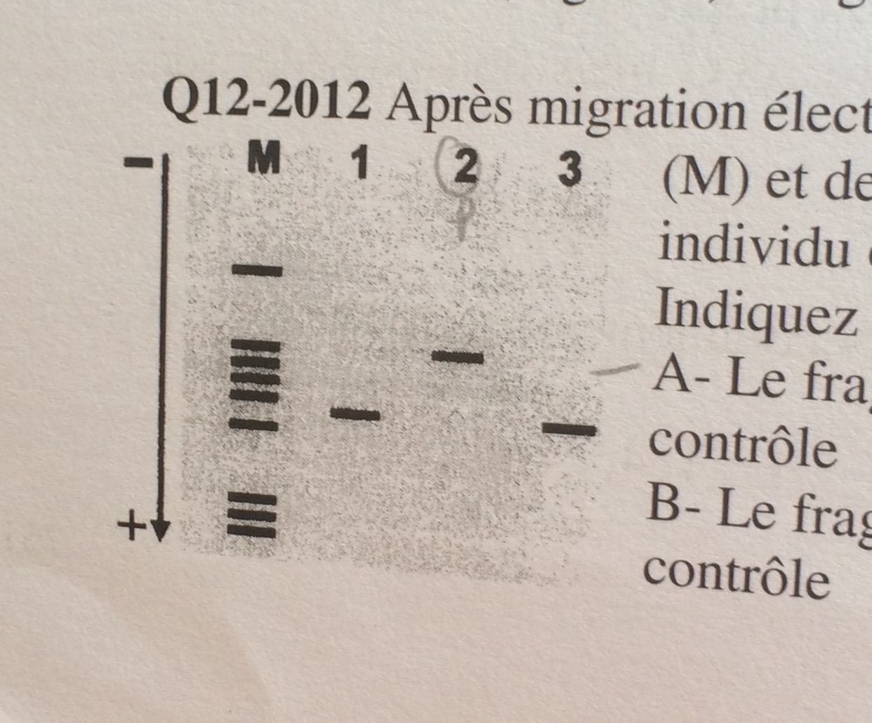 Par contre si il s'agit d'un gel sur une PCR-RFLP, les témoins négatifs ne sont généralement pas présents. Pour ce type de sujet il faut bien faire attention à ce qui doit être interprété.