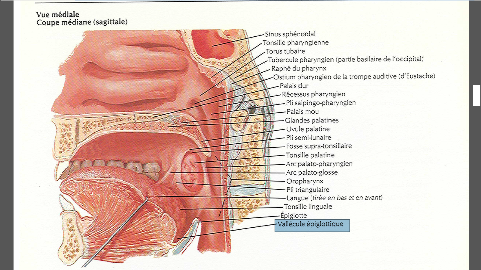 Bonsoir, j'arrive pas bien à distinguer ce qu'est le valécule épiglottique sur le schéma de la ronéo :D